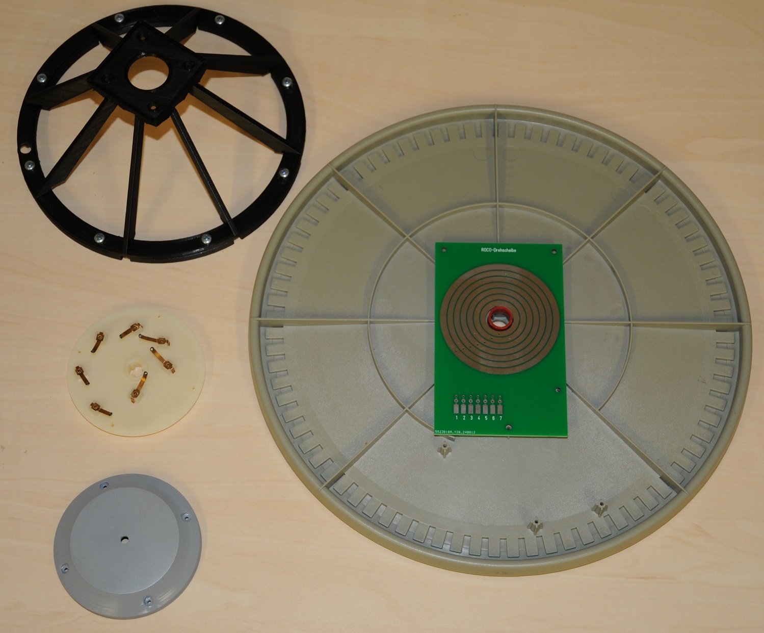 Das weiße Teil mit den Schleifern (mitte links) stammt von der Original-Drehscheibe.