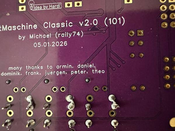 Durch das Aufbohren der Löcher für die Taster ist leider die Verbindung zwischen Ober- und Unterseite zerstört worden. Im folgenden Bild sind die notwendigen Brücken ersichtlich.