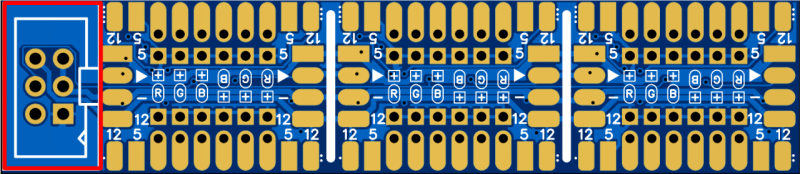 Die Platine besitzt nun zwölf statt zehn WS2811, einen 12 Volt-Anschluss für Reihenschaltungen und ist gut ein Drittel kleiner!