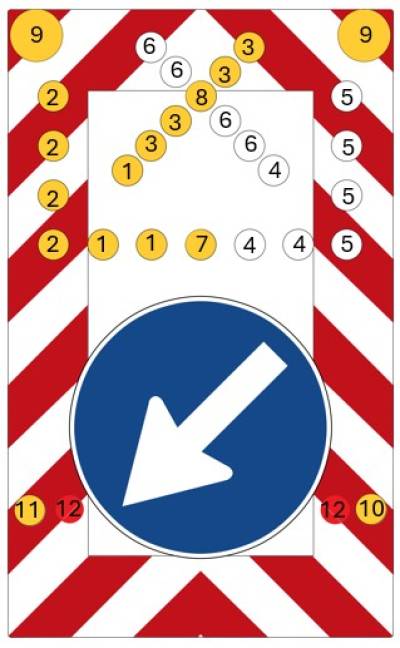 Hier können nur die drei Signalbilder angezeigt werden (Pfeil links, Pfeil rechts oder Sperrkreuz). Die Rücklichter und die Blinker bleiben funktionslos.