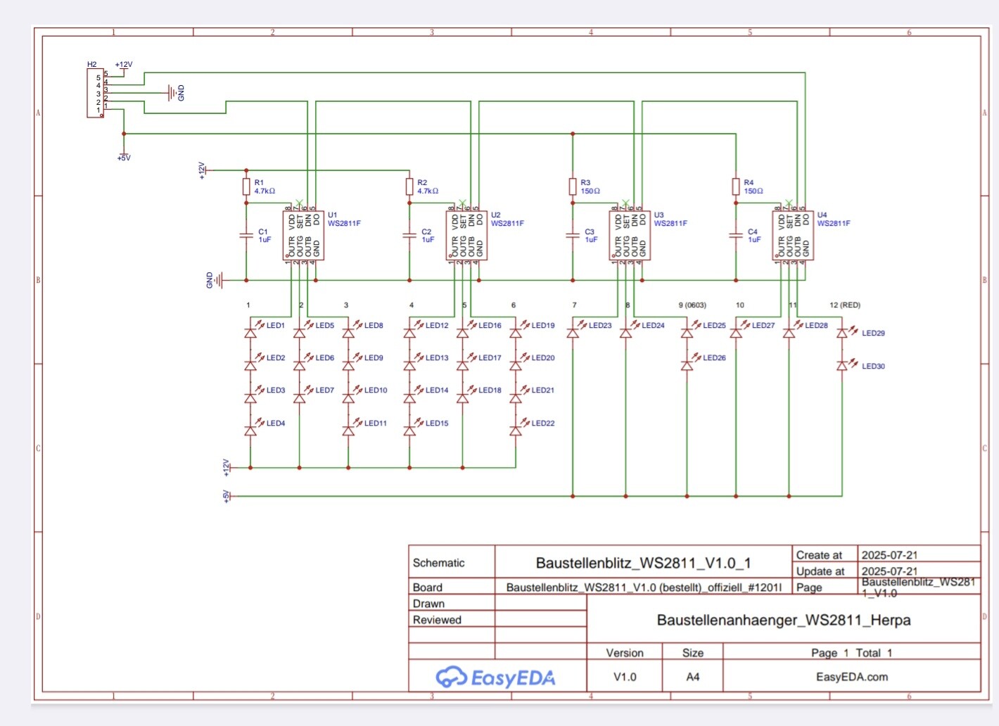 Gesagt, getan. Anbei findet ihr den Umbausatz des Herpa Verkehrssicherungsanhängers 052368-00x (alle Modelle) auf Beleuchtung, die natürlich mit dem MobaLedLib Programm gesteuert wird.